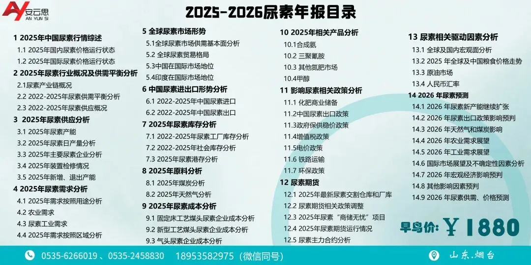 安云思2025-2026年中国尿素市场年报开始预售,售价1880元。