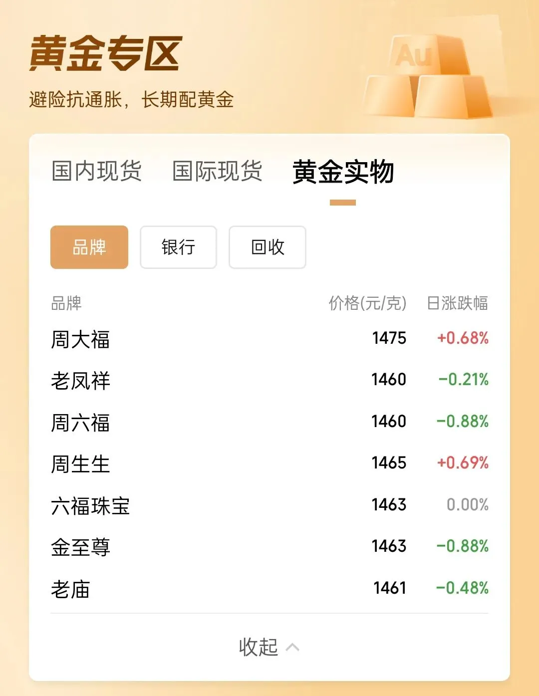 三、国内各大品牌黄金零售行情