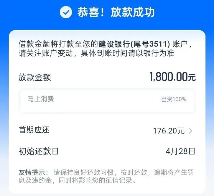 - 特别提示:请严格按照借款合同约定按时还款,避免逾期影响个人征信及账户使用;逾期超过合同约定宽限期的,相关记录将如实上报央行征信系统。