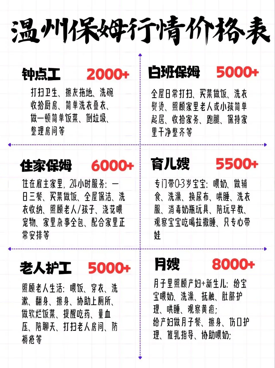 在温州找保姆阿姨的姐妹快看过来!整理了最新市场行情,不同类型价格和服务内容都给你安排得明明白白👇