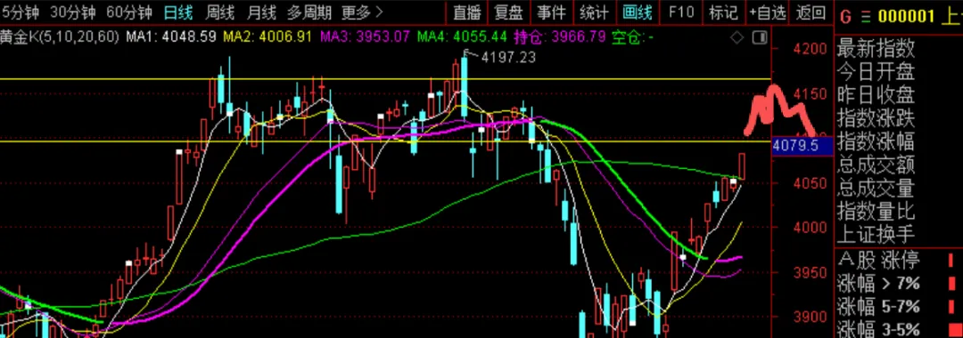 大盘跨过30分钟级别压力区,直接来到日线级别压力区,从量能来看直接突破压力区进入前期中枢震荡的概率比较大