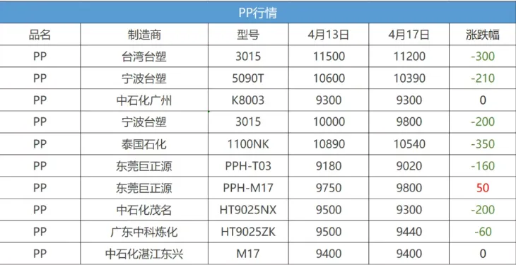 - 市场分析:原油价格暴跌导致PP成本支撑坍塌,市场恐慌情绪蔓延。下游塑编、注塑等行业需求疲软,终端用户观望情绪浓厚,成交清淡。短期PP市场将继续弱势运行。