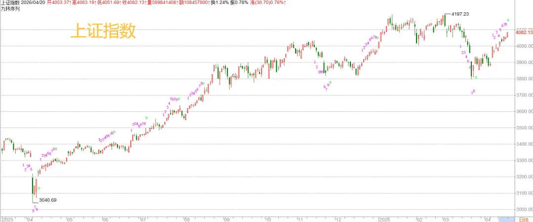 我们的交易规则是趋势为王和结构相助,九转序列不是规则,只是我们的一个辅助工具,在趋势之上的高9排列需要有分钟线的结构来配合使用。