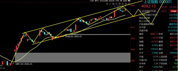 支撑位目前来到了4040,如果后续指数能够守住4040点,那么上升趋势将继续维持,资金可能会重新凝聚共识,发起新一轮上攻;但如果一旦跌破4040点,且无法快速收回,就意味着30分钟上升通道被打破,短期趋势将转向弱势,市场可能会迎来新一轮的调整。