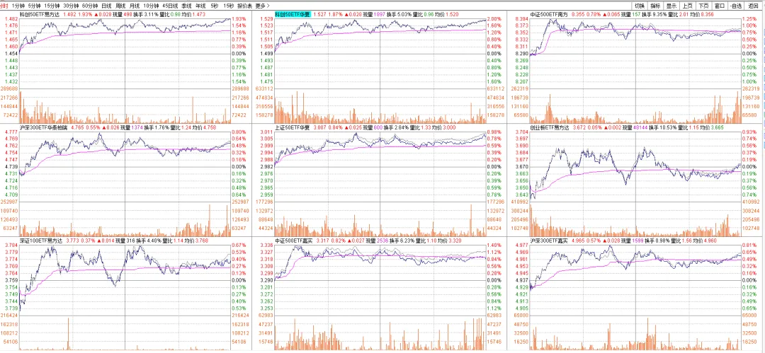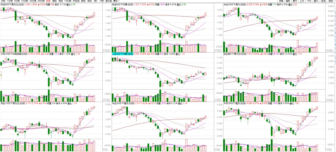 其实一不小心,50ETF、300ETF已大涨好几天了,我们前面说的,300ETF的5元远不远呢?这不一下子就到了么。