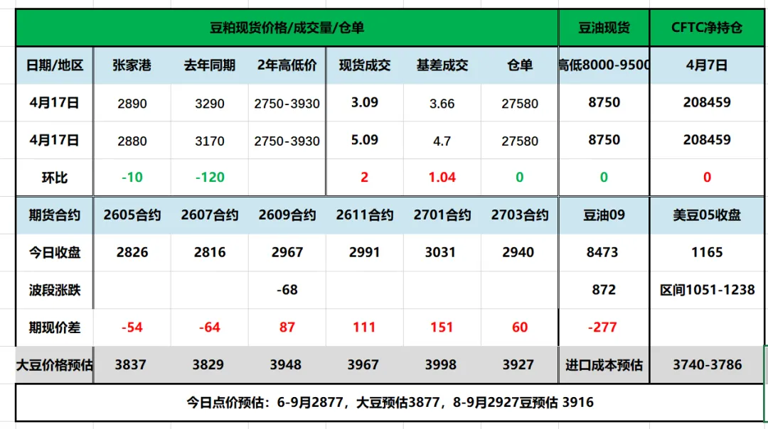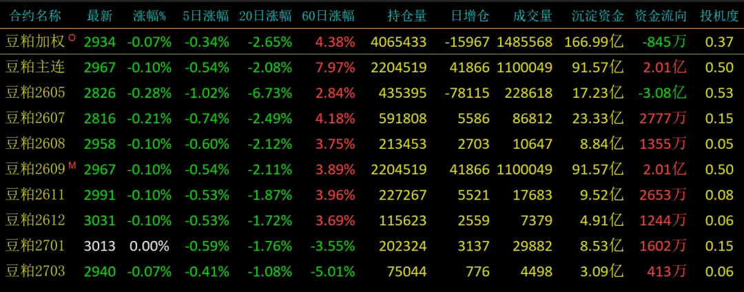 豆粕2605:收盘2826,期现差-54点,期货剩余10天,持仓43.54万手豆粕2609:现货2880,期现差86点,期权剩120天,看涨持仓83636手,看跌持仓61214手。期货剩4个月10天,持仓量220.45万手。去年同期240万手,收盘3045(合约最高261万手,4月9日-5月20日跌307点3168-2861)今日盘面:收盘2967,开盘2956,最高2978,最低2933,结算2956。增仓4.19万手+9点,成交110万手波动34点,换手42%,实体阴k线,2震荡下跌形态。价格40均线下,macd死叉0轴柱长,下方60均线支撑。前20增仓偏空,前5增仓略偏空,主力资金持仓偏多。昨日盘面:收盘2958,开盘2985,最高2985,最低2955,结算2971。增仓48458手-32点,成交90.22万手波动34点,换手50%,下影阳k线,3日下跌形态。价格5均线下,macd死叉0轴柱长,下方60均线支撑。前20增仓偏多,前5增仓略偏多,主力资金持仓偏多。今日总结:收盘稳中偏强,技术偏空,资金增仓偏多,趋势震荡偏空,日内价格低位遇支撑反弹,移仓换月未结束,基差销售旺季,短线看震荡2860-3000。夜盘参考2928-2988,现货跌10元2880元,现货成5.09万吨交缩量,远月基差连续2天缩量。供需未出现货源紧张,五一油厂停机较少,库存下降速率较慢,整体供应偏宽松.以上内容仅供参考,不构成任何投资建议,市场有风险,投资需谨慎!