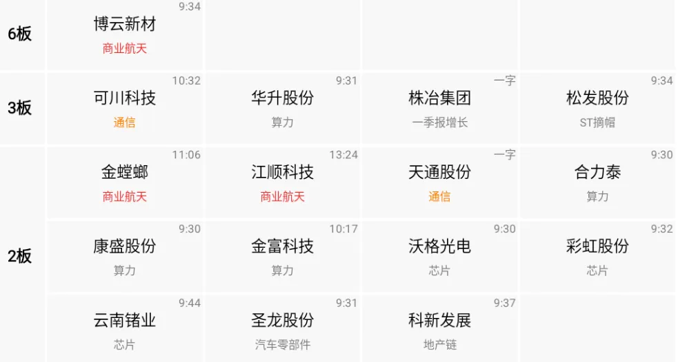 光通信/光纤:可川科技3连板,天通股份连续2个一字涨停,云南锗业2连板,通鼎互联3天2板,汇源通信再次涨停。