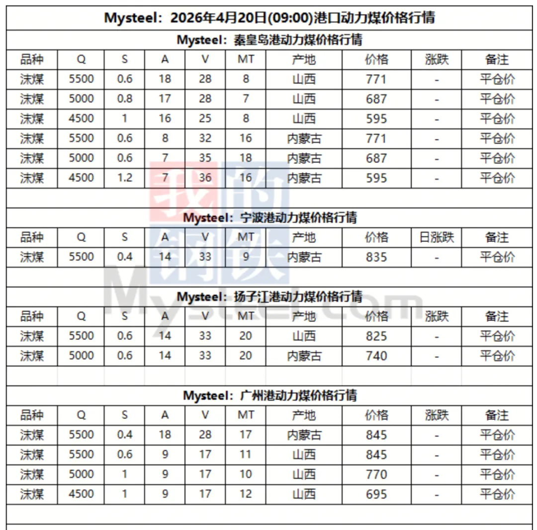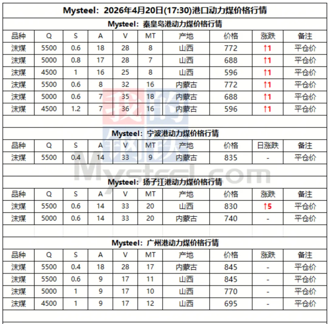 20日港口市煤暂稳运行。现货成本偏高情况下有货贸易商报价坚挺,部分贸易商看涨心态下捂货惜售。而终端日耗提升速度较慢,整体库存较为充裕情况下采购节奏偏缓。下游需求暂未大量释放,基本以刚需拉运为主,交投氛围一般,市场操作延续观望运行,后市需持续关注港口去库速度和实际成交情况。
