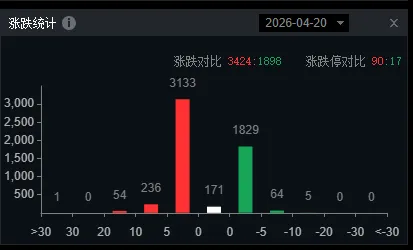 2026年4月20日,A股市场整体呈现震荡回升态势,上证指数成功逼近4100点整数关口,市场韧性凸显。成交额显著放大,市场情绪由谨慎转向乐观。机构观点