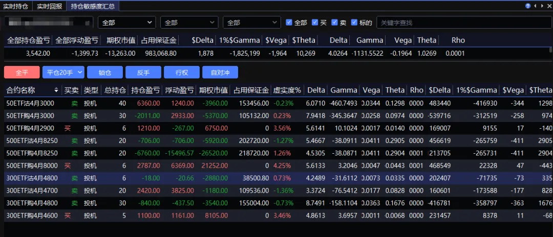 整体是在上周四仓位上进行了微调,收盘是纯中性,构成还是双卖+买购。