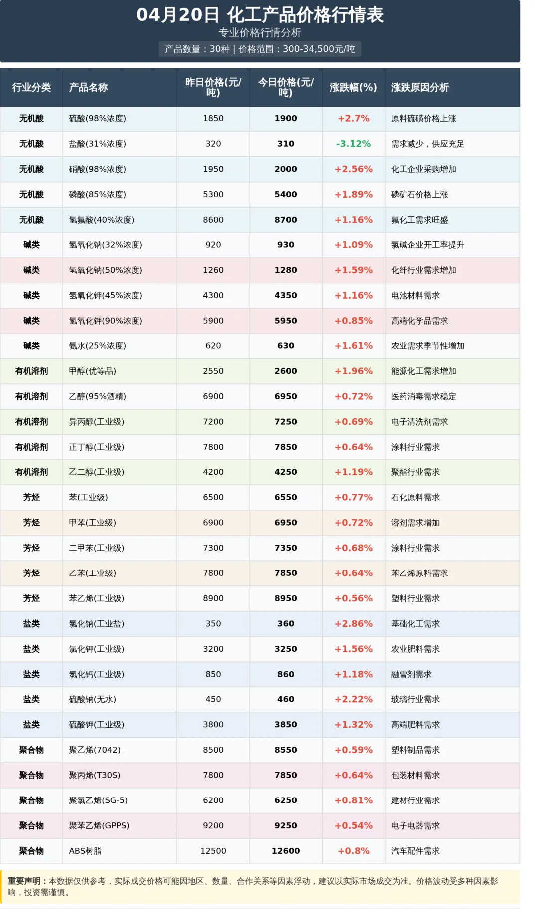 核心判断: 当前市场呈现"普涨但涨幅有限"的特征,说明下游需求在缓慢恢复,但未到强势爆发阶段。这与4月传统旺季预期基本吻合。