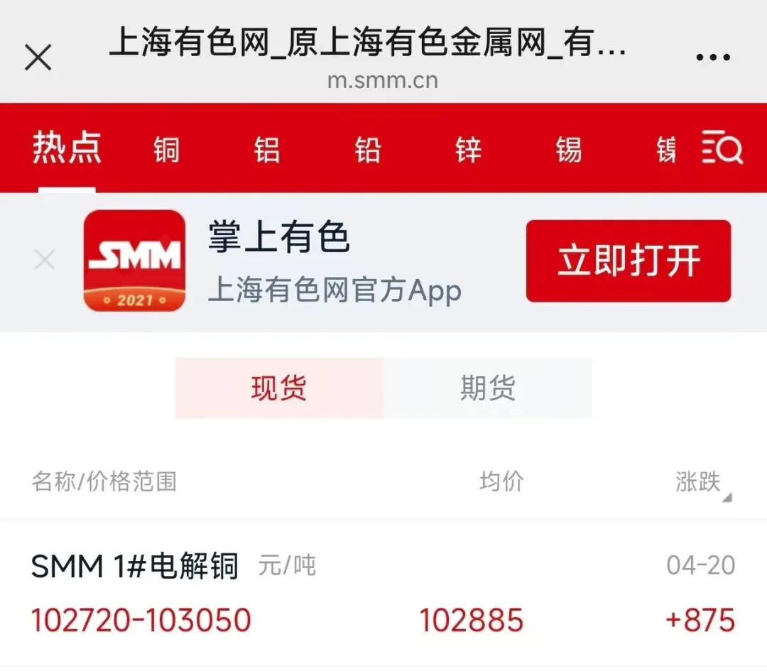 今天铜价实时查询!现货铜价格行情走势图今日回收多少钱一斤(4月20日)
