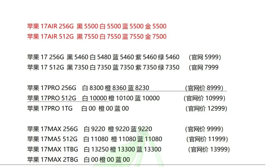 小米17PROmax 16+1TB黑5880白5900绿紫5950