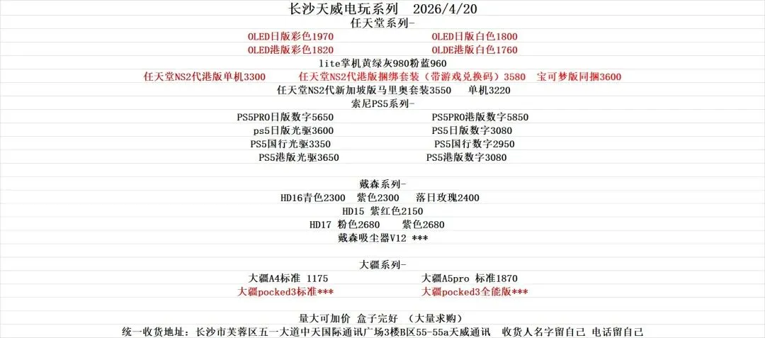 苹果安卓国产手机戴森任天堂长沙回收地址:湖南省长沙市芙蓉区五一大道中天国际通讯广场3楼b区55天威通讯