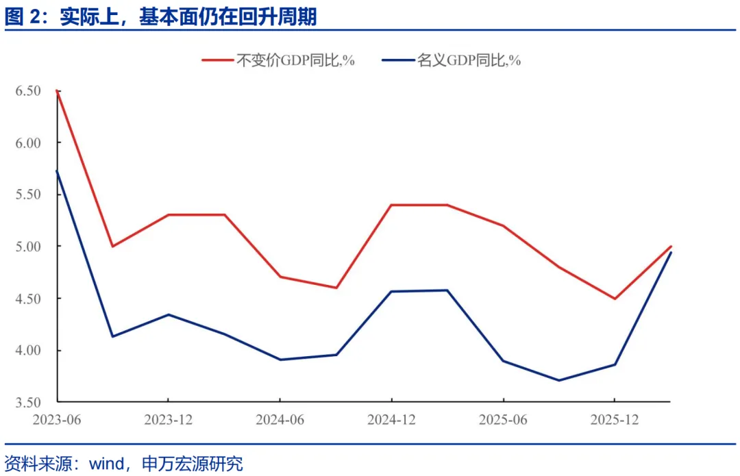 资金推动债市行情好转,市场基于行情选择性判断消息的多空倾向,阶段性呈现出对基本面反应相对钝化的特征。“资金与负债”逻辑的强化在于,宏观经济呈现出“信贷不强、经济与通胀温和回升”的独特组合,这一组合本身对债市方向指引并不明确,但为“看资金做债”提供了环境。资金面宽裕、交易盘负债扩容,很多偏中性的信息(如经济数据平稳)被市场解读为利多。