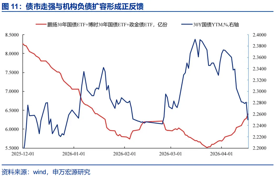 但利多因素多为“快变量”,包括资金面宽裕、机构负债端加速扩容等驱动因素。宽松的流动性环境大概率持续,这也是债市做多的核心基础。只要央行维持稳健略偏宽松的基调,资金利率低位运行,债市的套息和加杠杆空间就依然存在,机构也大概率维持做多情绪。而机构负债端资金加速进场更是做多行情强化的“助推器”,理财规模跨季后扩容、广义基金申购放量等带来的增量资金是强有力的买盘力量,其速度和持续性直接决定行情的高度与热度,这或许是当前最需要关注的快变量。