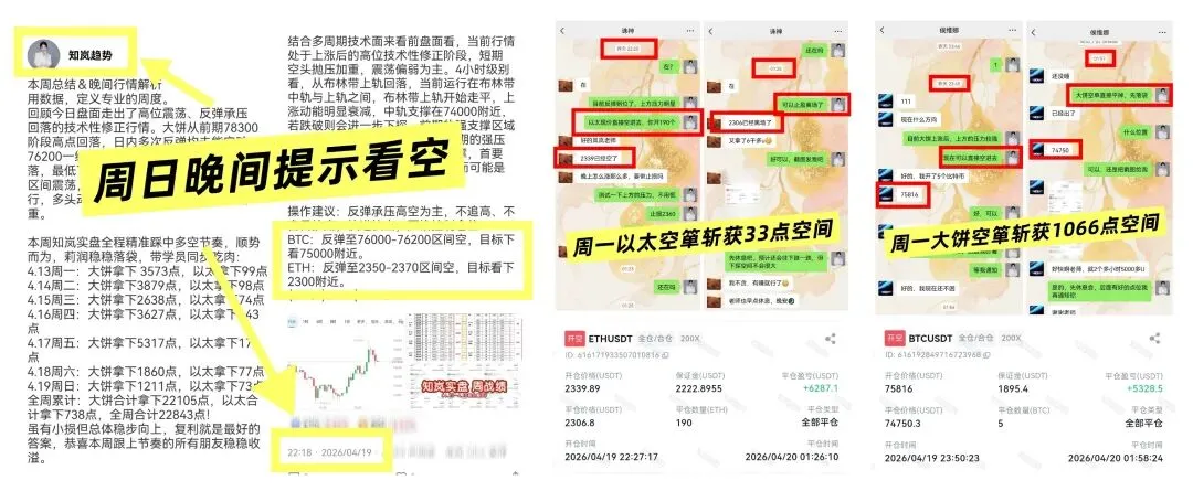 在周日凌晨明确提示的看空思路,知岚实盘布局精准预判了高位回落走势。