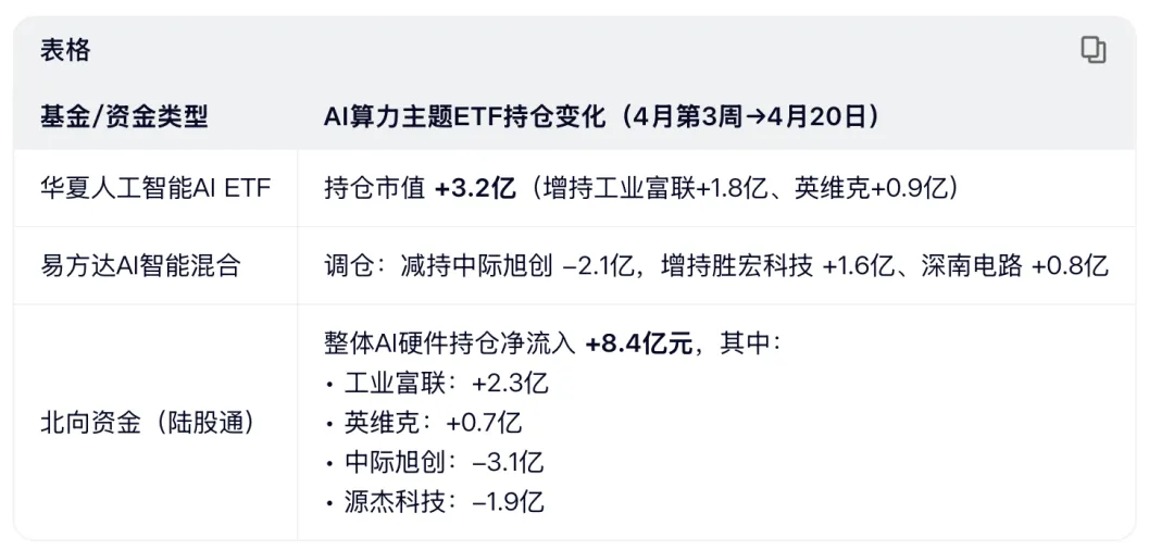 从多家基金的重仓股数据来看,"易中天东光源英胜富"机构持仓重合度较高。这里面的抱团资金不会一天瓦解,更多的是内部切换。"易中天"单日主力净流出,筹码出现底部上移结构;而PCB、液冷单日主力净流入(例如胜宏单日主力净流入10.91亿元),液冷还有涨停票,机构在高位兑现获利,同时布局低位板块的行为明显。
