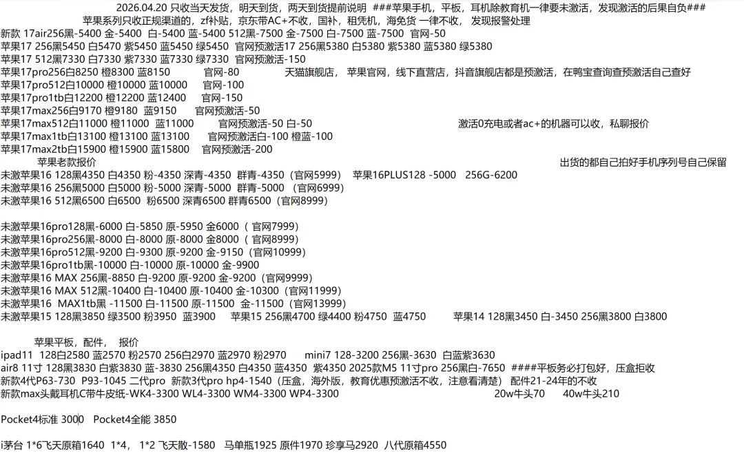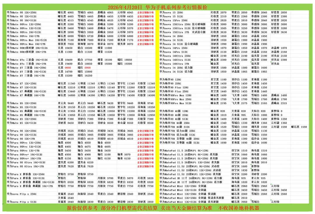 (1)二级市场为自由交易市场,价格实时波动,可能每个小时的卖价都不一样,此报价为华强北市场收货参考行情,实际结算价见公众号:鸟哥撸货数码结算价。
