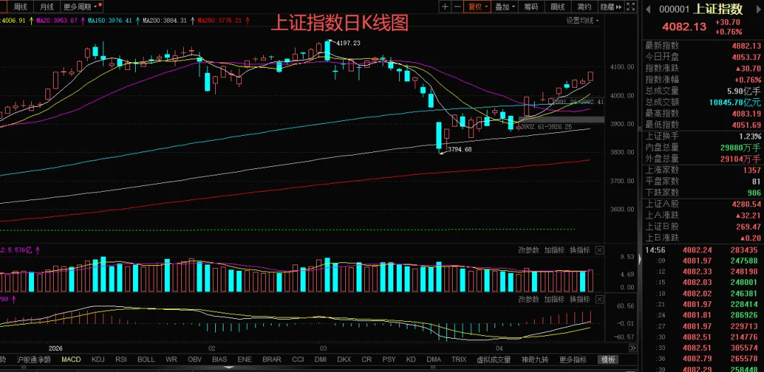 ”,要警惕,因为在上方就是一个向下跳空缺口的阻力位(4092点),明日观察缺口回补情况,形势不好就先撤,毕竟涨多调一调才健康。