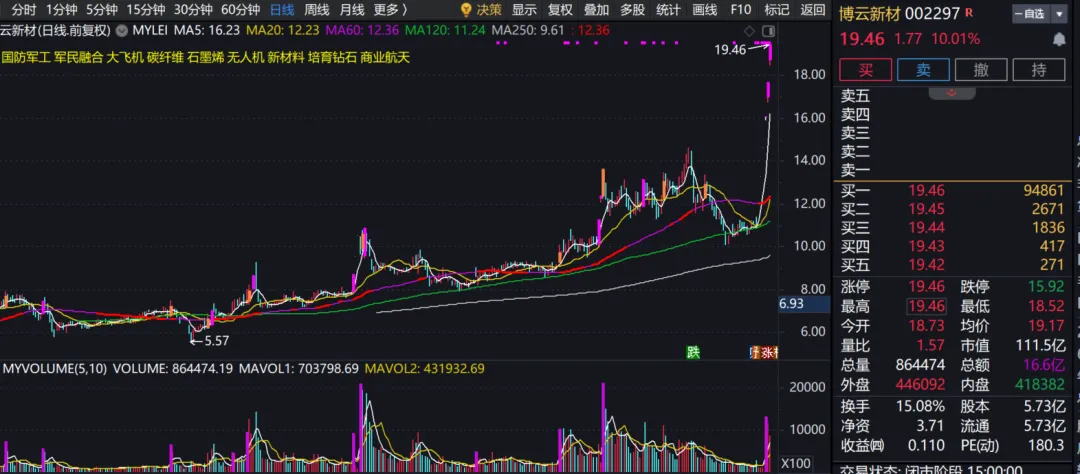 紧盯博云新材的集合竞价——能否继续超预期高开晋级7连板
