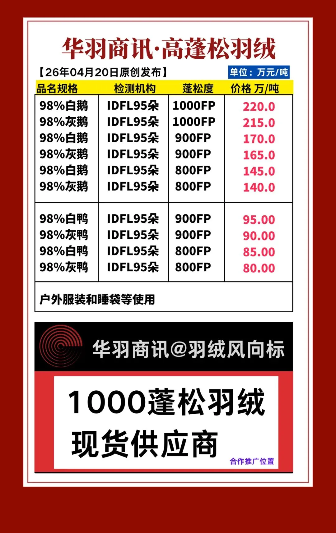 >383期 | 华羽商讯·国标羽绒行情【20260420发布】