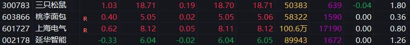 波段票:三只松鼠和桃李面包震荡,持有。上海电气收小阳线,耐心等反弹。延华智能震荡,拿好不动。