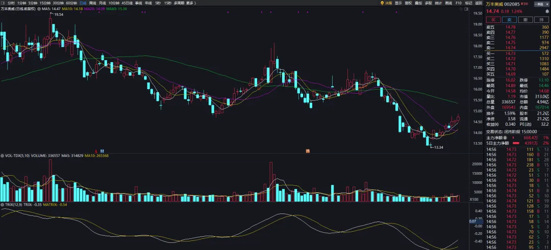 长线票:众合科技震荡,近期可以加仓,后续高抛低吸。片仔癀耐心布局。苏能股份安心持有。 中线票:万丰奥威收小阳线,最近有不少资金在进场,静等大阳线拉升,月底之前看好站上16元。 张家界震荡,持有。莲花控股震荡,锁仓不动。人民网收小阳线,看好继续修复。省广集团无操作。市场连续反弹多日,部分高位票积累了很多获利盘,筹码开始松动,谨慎追涨杀跌,拿好手上的票等轮动即可。