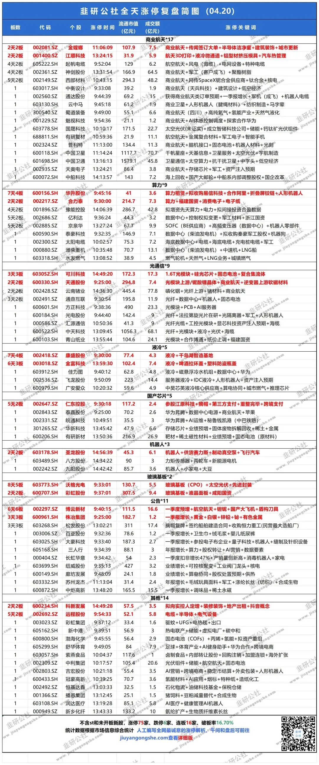 #A股复盘#4月 20 日股市复盘#纳米也有梦想#今日股市#AI大科技#商业航天#圣阳股份#碳纤维#炒股日记