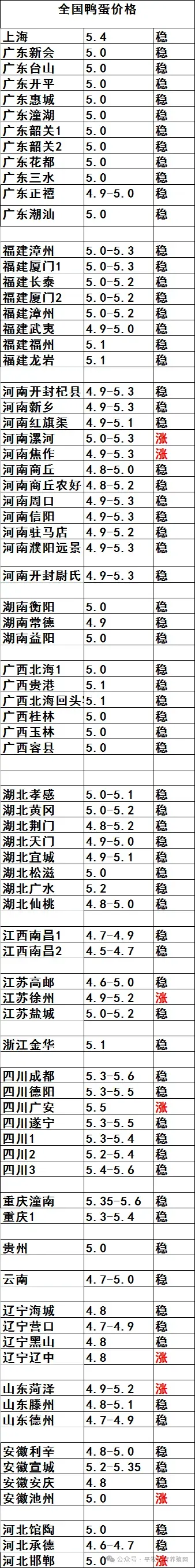 >2026.4.21全国鸭蛋行情