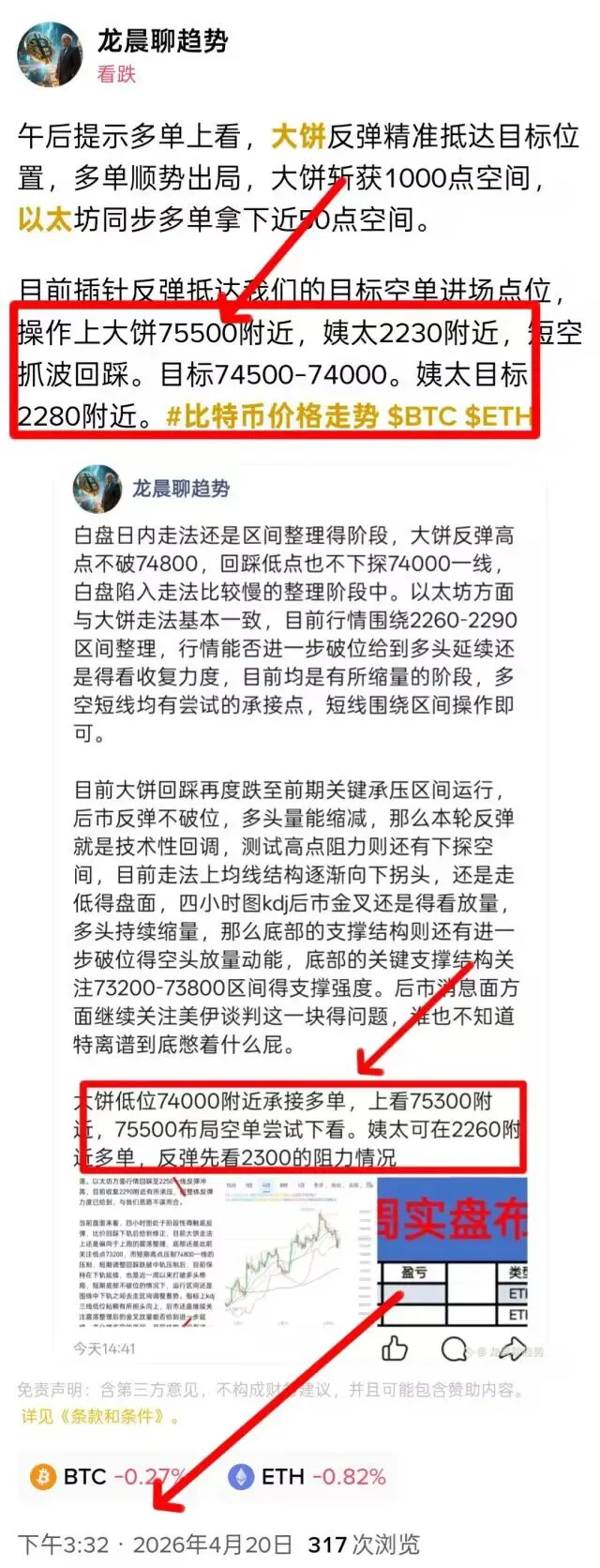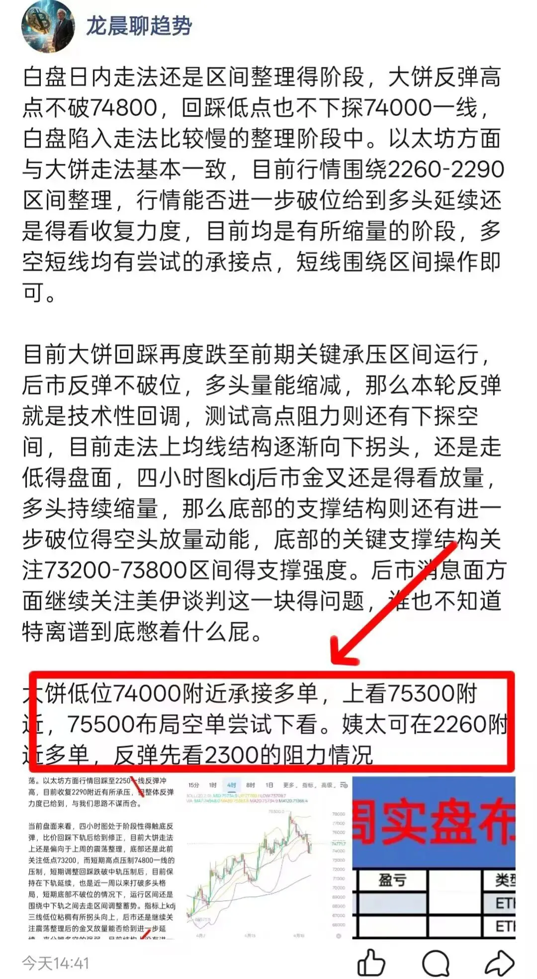 大饼可在75500附近空,看73800-73200支撑情况。姨太可在2305-2330空,看2250支撑结构。