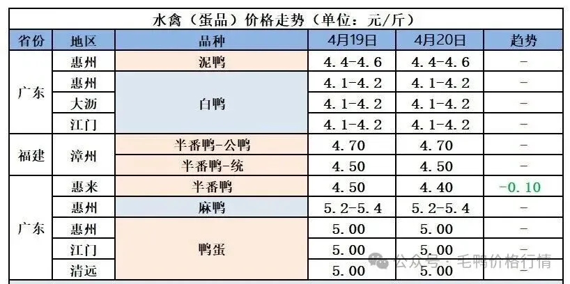 2026年4月21全国鲜鸭蛋价格
