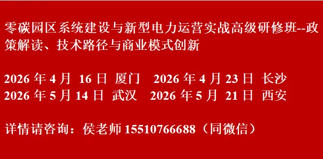 欢迎参加我们即将举办的 “零碳园区系统建设与新型电力运营实战高级研修班:政策解读、技术路径与商业模式创新”。2026年4月16日 厦门市 2026年4月23日 长沙市2026年5月14日 武汉市 2026年5月21日 西安市索取文件请联系我! 侯老师 15510766688