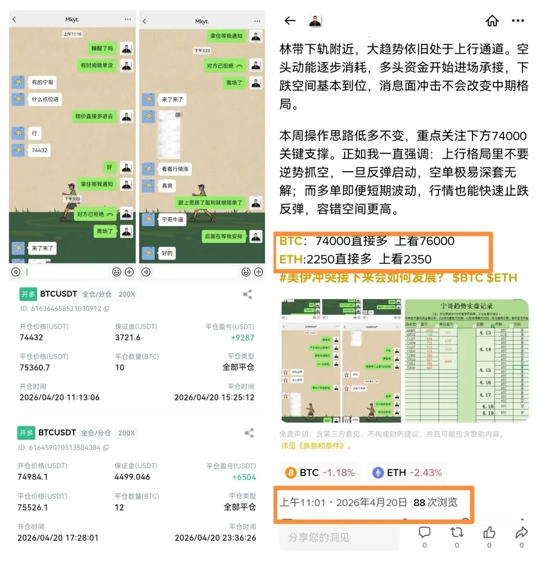 昨日行情以一个缓慢的阶梯上行结构最高走至75750高点,后承压回落,上行通道稳固,我们也是直接布局两单多单,共拿下1470掉利润空间,所有策略思路都是提前公开告诉大家的,我今天思路也一直坚定看多!