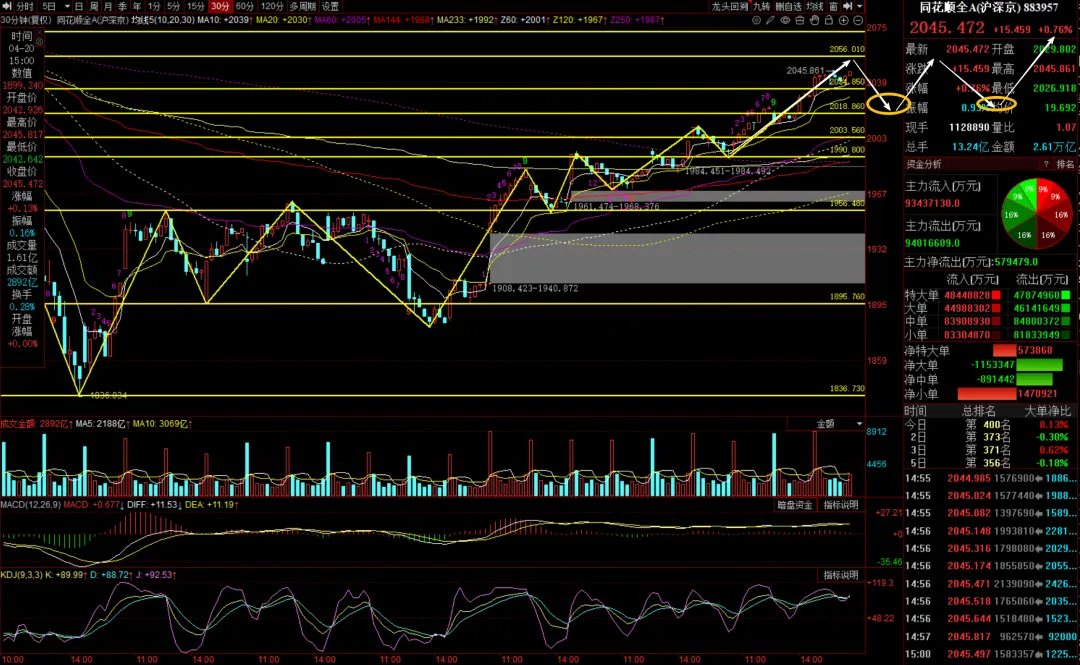 (1)等同花顺全A 30分钟调整,在2018之上形成底分型做短线低吸。