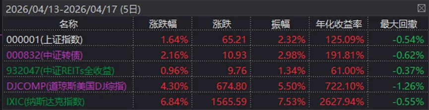 本周是股债同涨的一周,普天同庆,权益主要是美伊战争缓和、谈判开始、以及科技板块的强力修复,债市主要是资金非常宽松推动的行情,完全不受权益行情的干扰。