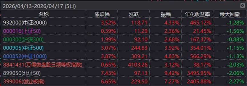 权益修复过程中,中小盘表现的弹性更强,尤其创业板上涨迅猛,两周涨幅已经超过15%。ICE布油收在92美元附近,伦敦金现在4800元上方。