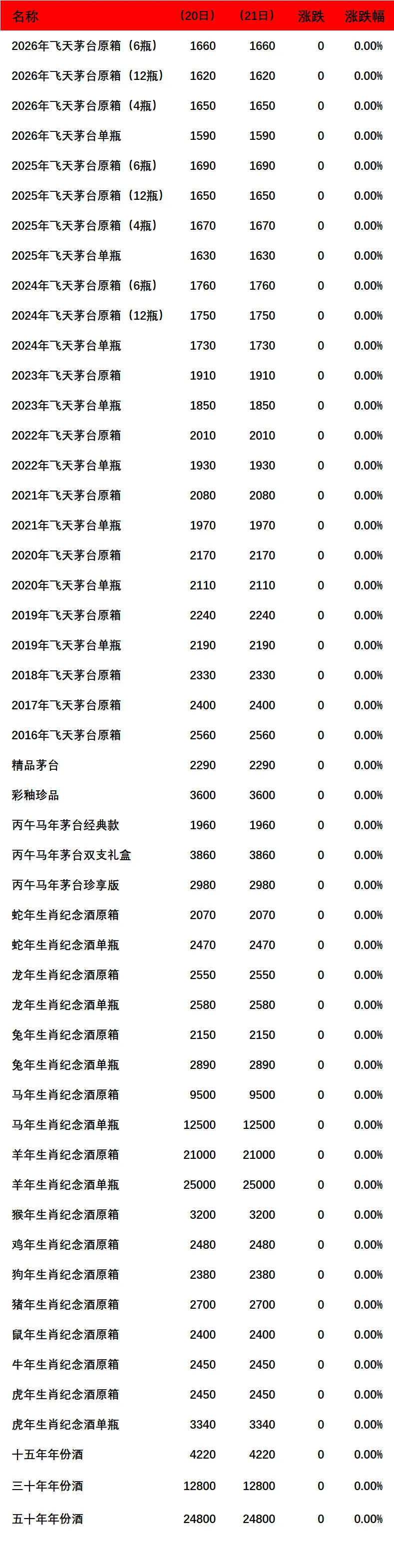 2026年4月21日茅台价格行情