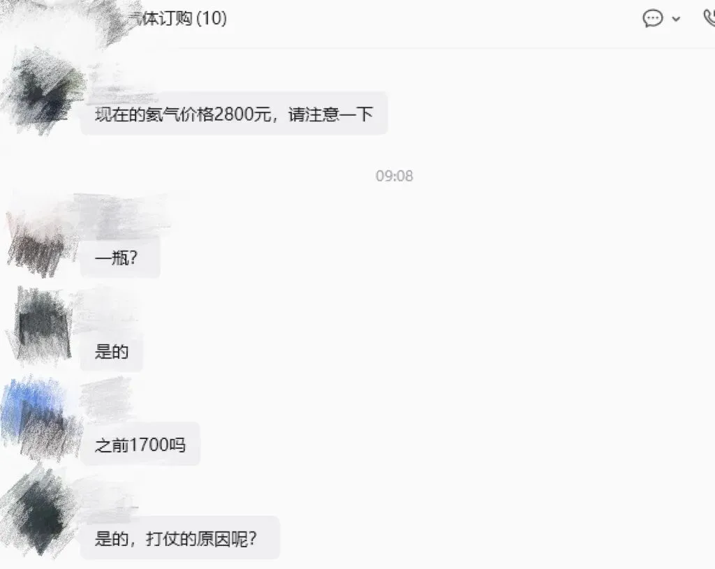 今天一早工作群里弹出消息“现在的氮气价格2800元,请注意一下”在这之前不含税的价格是1500,也就是说,就隔了一天价格接近翻倍,终端价格传导非常快,我们一大早收到涨价消息,说明消息也是才从源头供应商那里过来,兵贵神速。