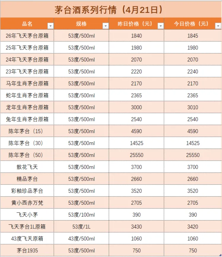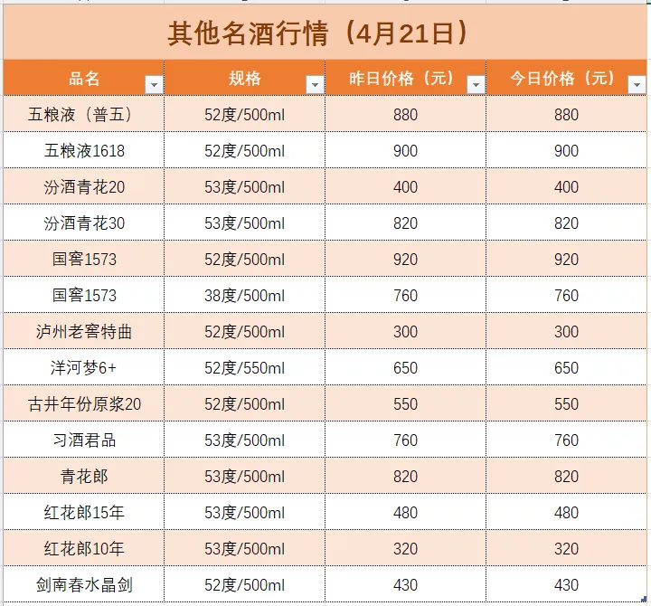 名酒行情(4月21日)