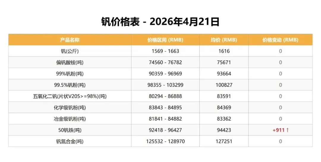 今日钛产品市场全线持稳,所有监测品种均价均未发生变化。钒产品市场则多数持稳,仅50钒铁价格出现上涨,其余品种保持不变。整体来看,钛市场延续平稳格局,缺乏波动;钒市场则略有回暖,个别品种小幅走强。下游采购仍以刚需为主,市场情绪偏向谨慎。短期价格走势或将延续分化态势。钒荣网旨在汇聚钒钛产业链上下游企业,钒荣网将通过资讯浏览推送、“双碳”产业、在线交易推广、技术成果转让、产业金融、钒产业指数、行业标准会议会展、咨询服务数据报告等功能板块,为钒储能上下游企业提供商机对接、行业资讯、产业金融、市场拓展、名企研学、品牌宣传、数据服务、专属顾问等服务。