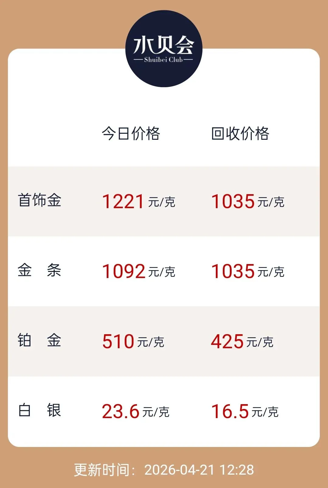 水贝首饰金参考价即为深圳水贝零售金首饰价,由于黄金税发布,市场目前销售首饰金金价普遍是大盘价(融通金价)上浮加80-120元/克不等,主流批发商报价为:1140-1150元/克。