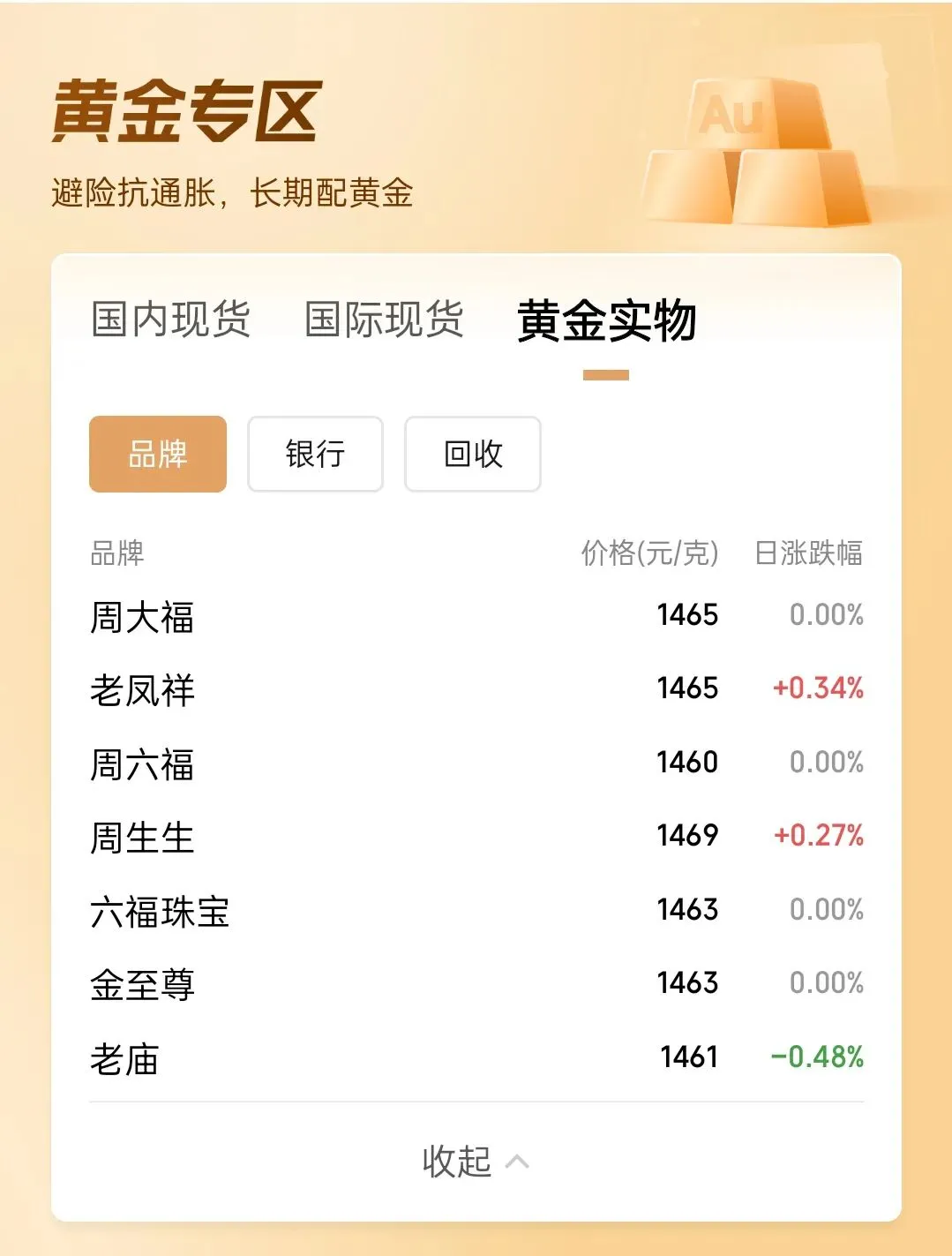 三、国内各大品牌黄金零售行情