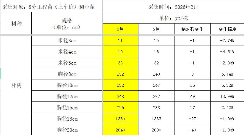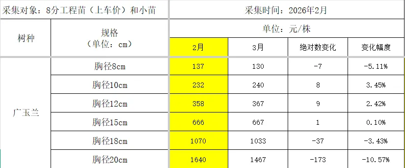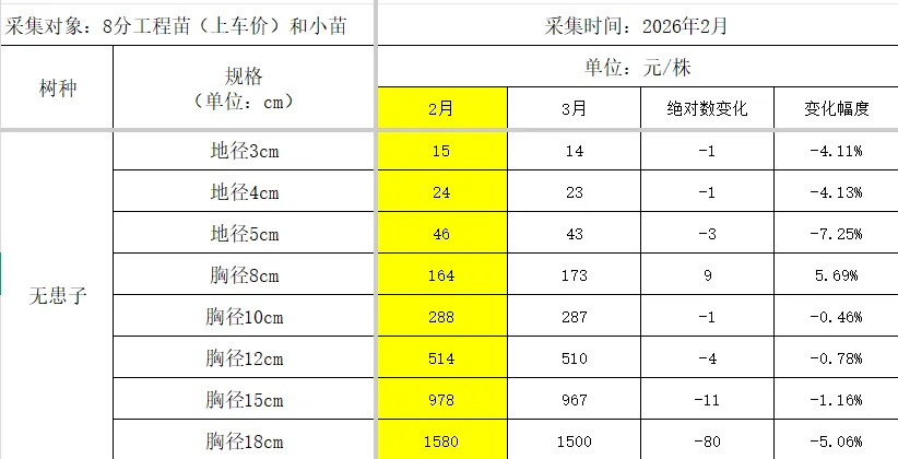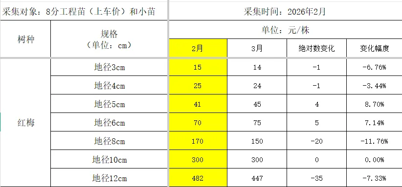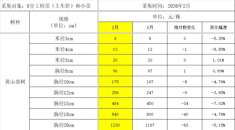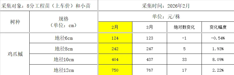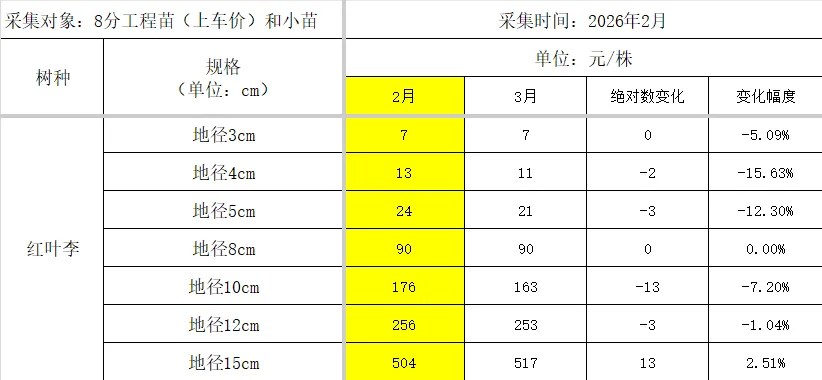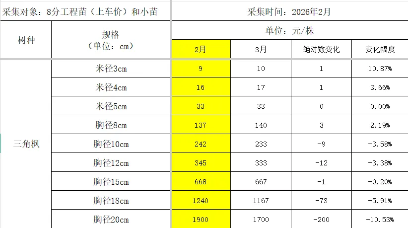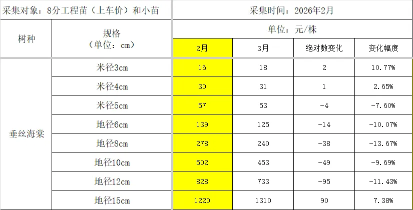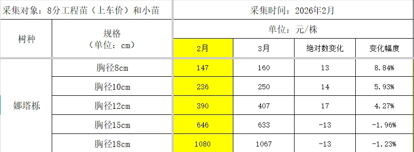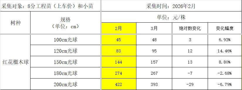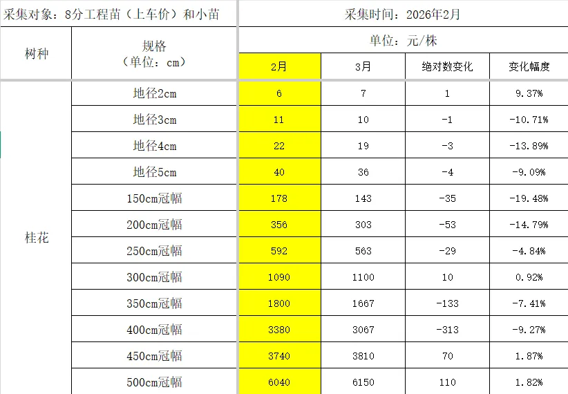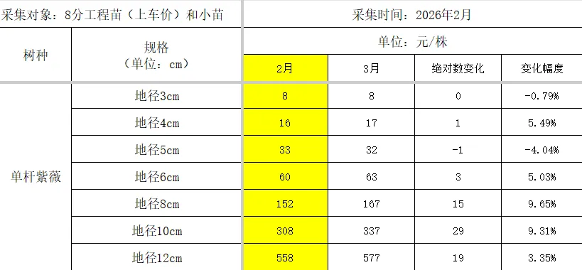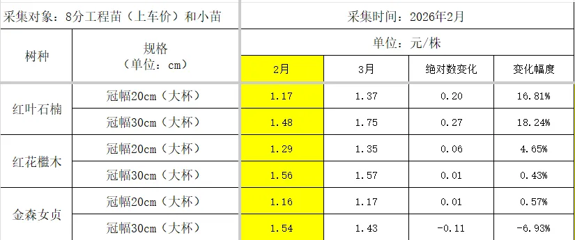 春节后,随着气温升高和传统苗木种植季节的来临,整体市场行情出现回暖迹象。