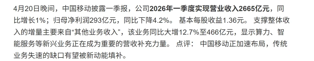 五、某电信运营商公布一季报