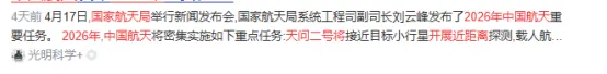 2026年是中国的“航天大年”。一方面根据国家航天局最新消息,天问二号将开展近距离小行星探测,神舟二十三号蓄势待发。更重要的是,多型可重复使用火箭将在二季度密集开展飞行验证