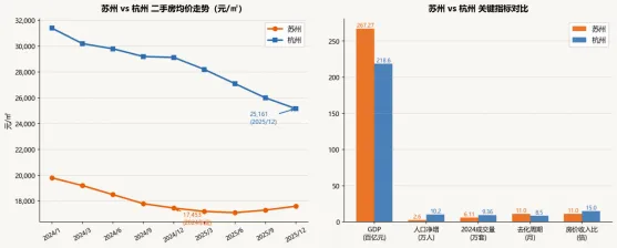 图1:苏杭二手房均价走势及关键指标对比(2024-2025)