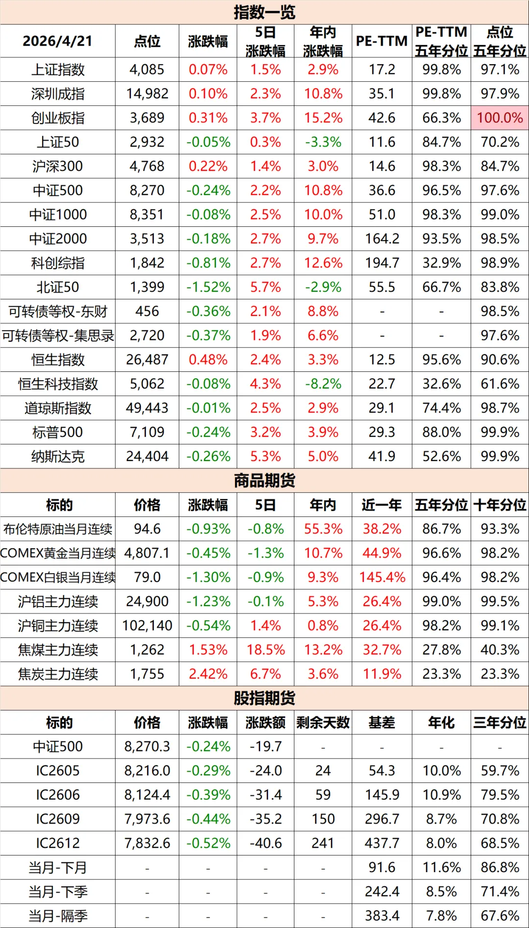 >4月21日 行情一览
