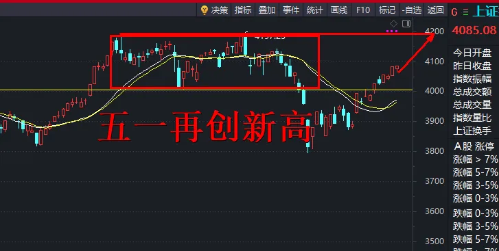 其实,我认为今天盘中的调整是一个很好的加仓点。如果今天不加的,行情最多明天再震荡一天,周五或者下周一很有可能会放量突破4100,并且在五一放假前,再创新高。