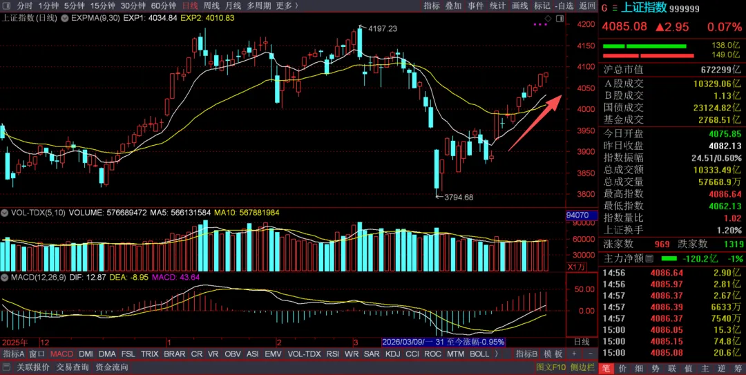 当日涨幅0.07%收于4085.08点,成交额24266亿元